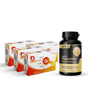 Modern lifestyles limit sun exposure, disrupt sleep cycles, and increase stress on bones, muscles, and nerves. The D-Mag Bundle is a scientifically aligned combination of high-potency Vitamin D3 (200,000 IU softgels) and Magnesium Glycinate tablets, designed to support optimal absorption, balance, and overall wellbeing.